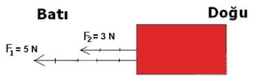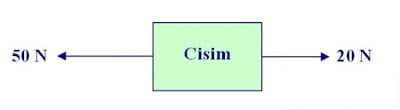Örnek: Bir cismine aynı doğrultuda ve zıt yönde 5 N ve 3 N’luk kuvvetler etki ediyor.