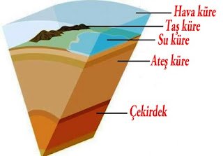 - Hava küre, su küre, taş küre Dünya’nın görülebilen katmanlardır.