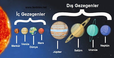 • Jüpiter, Satürn, Uranüs ve Neptün  dış gezegendir.