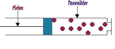 Şırınganın ağzını kapatıp pistona bastırdığımızda havanın sıkıştığını gözleriz.