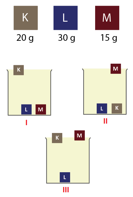 Soru 6: Eşit hacimdeki K, L ve M cisimlerinin kütleleri verilmiştir.