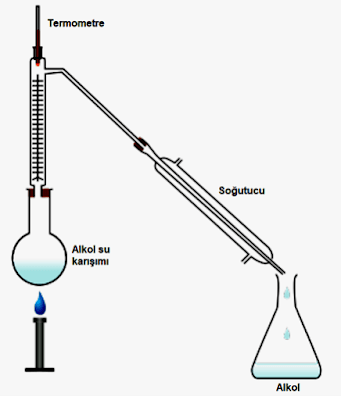 Sıvı-sıvı homojen karışımların ayrılmasında kullanılır. Sıvıların kaynama noktaları farkından yararlanarak sıvılar birbirinden ayrılır. Kaynama noktası düşük olan sıvı ilk önce buharlaşarak sıvıdan ayrılır. Buharlaşan sıvı soğutucudan geçerken yoğuşarak sıvı hale gelir. Başka bir kapta sıvı toplanarak ayrım gerçekleşir.