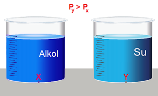 Aynı yükseklikte su ve alkolden, suyun yoğunluğu fazla olduğu için tabana yaptığı basınç daha fazladır.