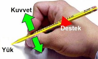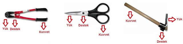 - Destek arada olan kaldıraçlar kuvvetin yönünü değiştirir.