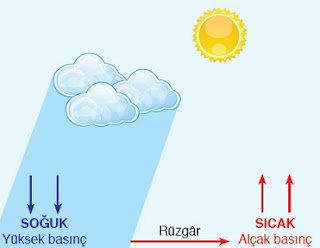 Hava sıcaklığındaki değişmesiyle basınç farkı ve rüzgarlar oluşur.