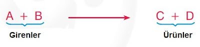 Tepkimeye (Reaksiyona) girenler sol tarafa, ürünler ise sağ tarafa yazılır.