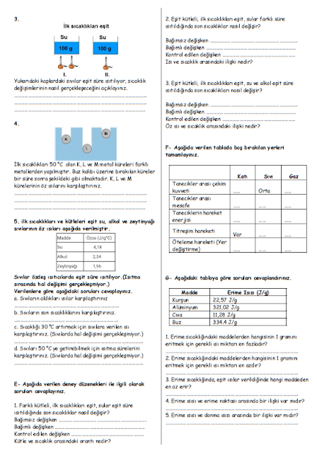 8.Sınıf Maddenin Isı ile Etkileşimi Çalışma Kağıdı