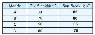 Sıvıların sıcaklık artışları sırası ile aşağıdakilerden hangisinde doğru olarak verilmiştir?