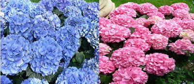 Ortanca çiçekleri asitli toprakta kırmızı, bazik toprakta mavi çiçek açar.