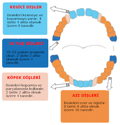 Besinleri parçalama, koparmak, ezme ve öğütme için dişlerimizi kullanırız. Konuşmaya yardımcı olmaktadır.