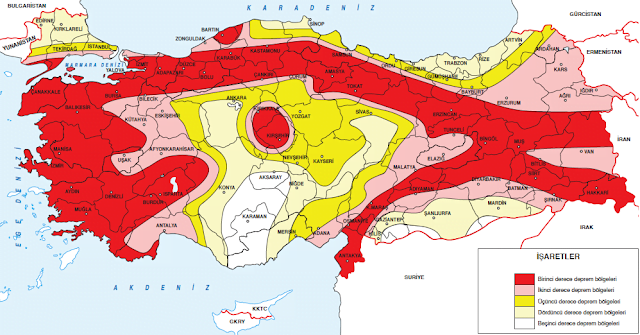 - Türkiye’nin büyük bir kısmı 1. dereceden deprem bölgesidir.