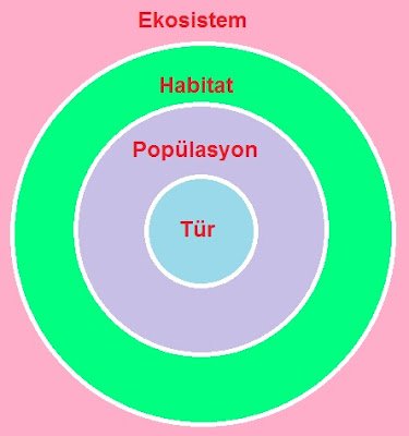 Ekosistem > Habitat > Popülasyon > Tür ilişkisi vardır.