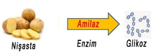 Nişasta ağızda tükürük içerisinde bulunan amilaz(pityalin) enzimi sayesinde parçalanır.