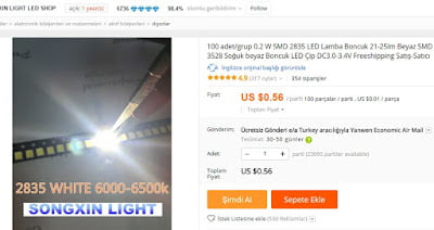Piyasada satan yer görmedim bende aliexpress den sipariş ettim 100 adet 0.2 W SMD 2835 LED kargo masrafı ile beraber 0,56 $ hatta içinde 100 taneden fazla da çıkmakta.